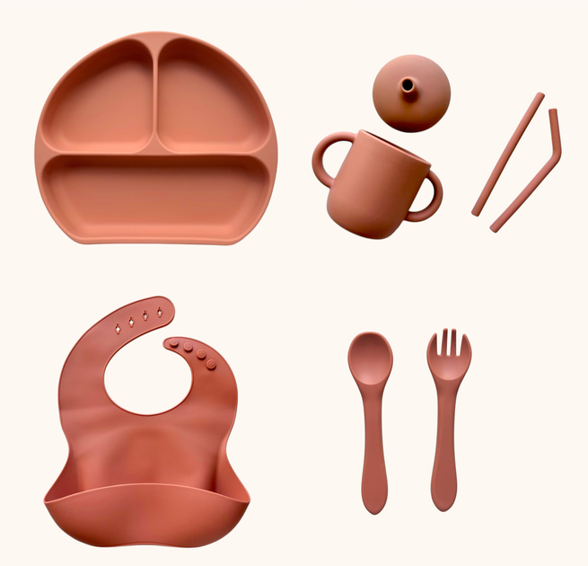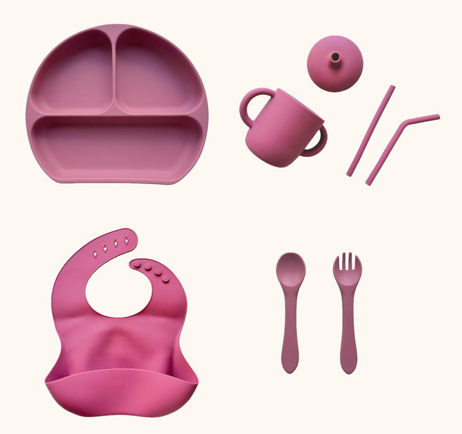 Набір дитячого силіконового посуду "Стартовий" Димна троянда (2767041779)