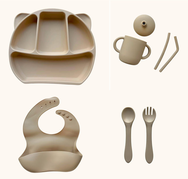 Набір дитячого силіконового посуду "Стартовий" Бежевий (2767041782)