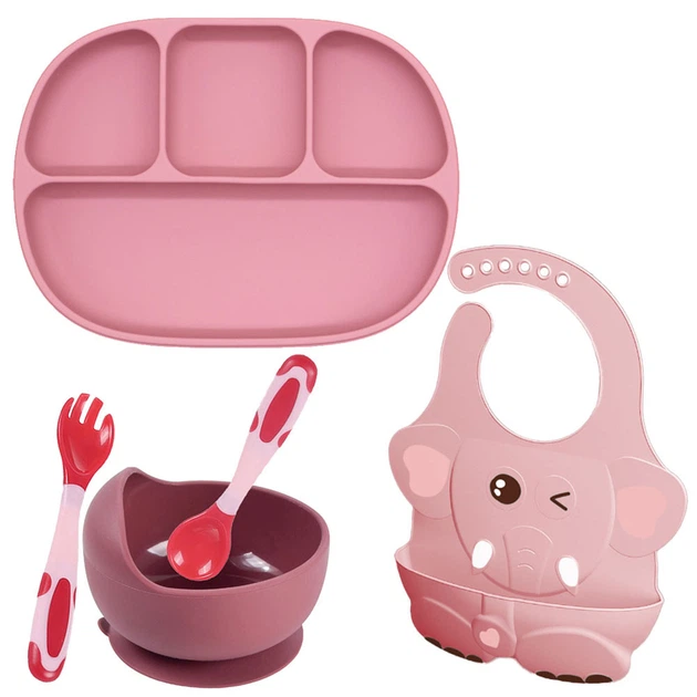 Набір силіконового посуду 2Life тарілка D5 слинявчик Слонік термочутливі прилади та супниця Y16 vol-10358