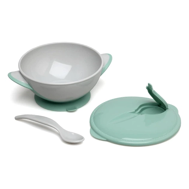 Набір тарілка глибока силіконова антиковзаюча, кришка, ложка Kiokids (3914)