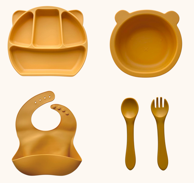 Набір дитячого силіконового посуду "Стартовий з вушками. Ведмедик" Гірчиця (2767041727)