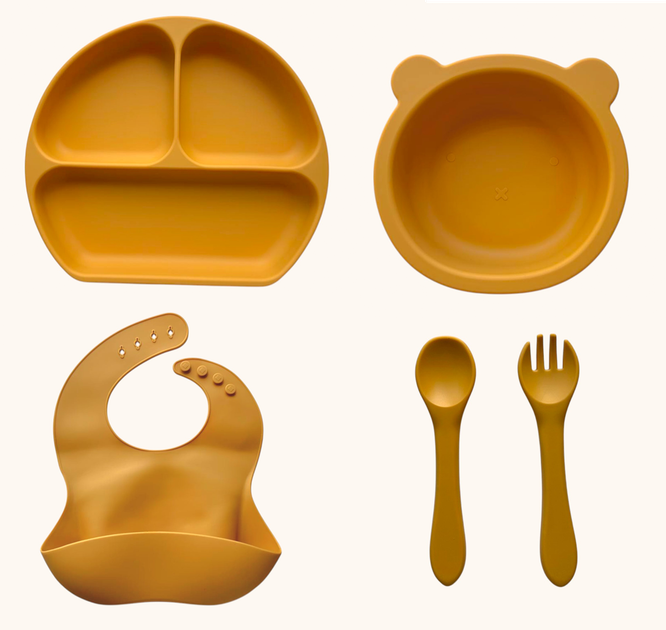 Набір дитячого силіконового посуду "Стартовий. Ведмедик" Гірчиця (2767041691)