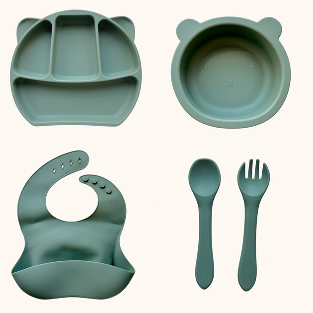 Набір дитячого силіконового посуду з 6 предметів зелений колір