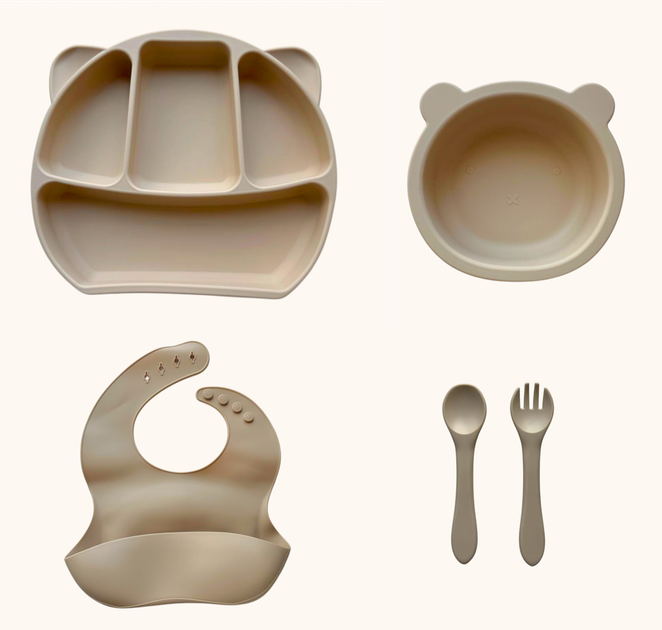 Набір дитячого силіконового посуду "Стартовий з вушками. Ведмедик" Бежевий (2767041722)