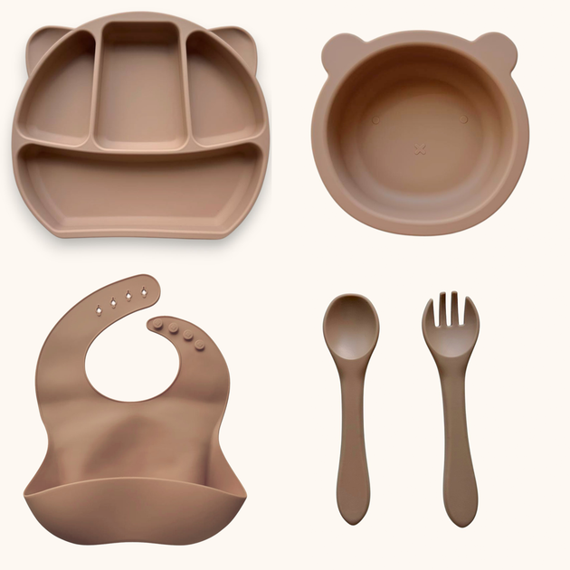 Набір дитячого силіконового посуду "Стартовий з вушками. Ведмедик" Капучіно (2767041721)