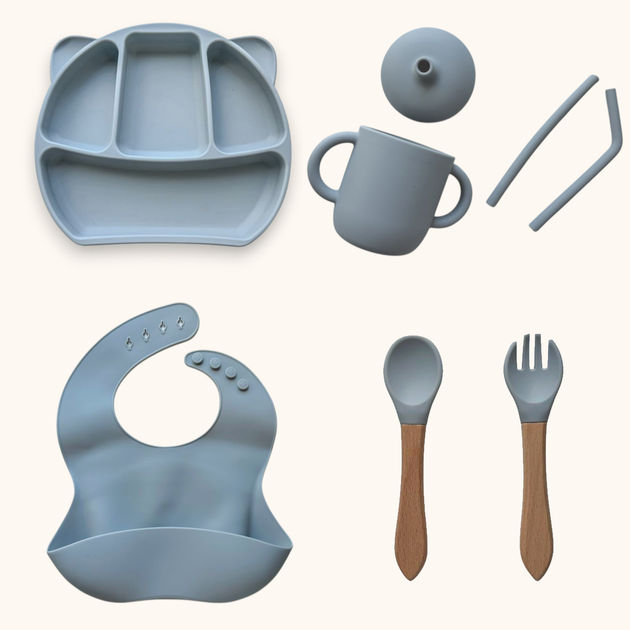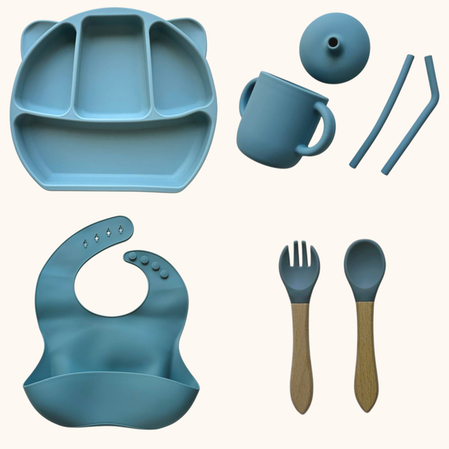 Набір дитячого силіконового посуду "Стартовий з вушками. Бук" Димний блакитний (2767041752)