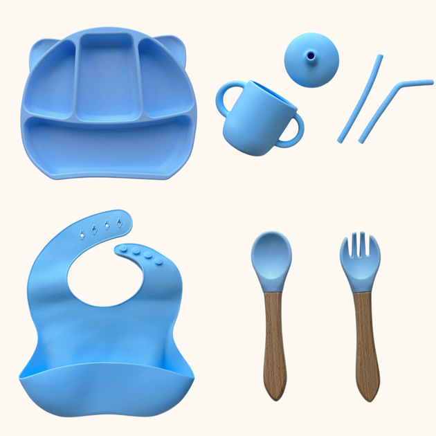 Набір дитячого силіконового посуду "Стартовий з вушками. Бук" Блакитний (2767041755)