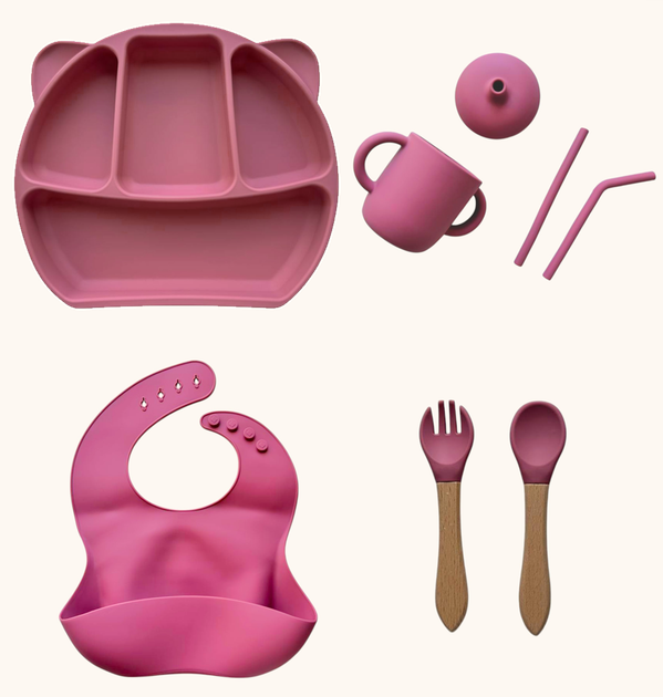 Набір дитячого силіконового посуду "Стартовий. Бук" Димна троянда (2767041771)