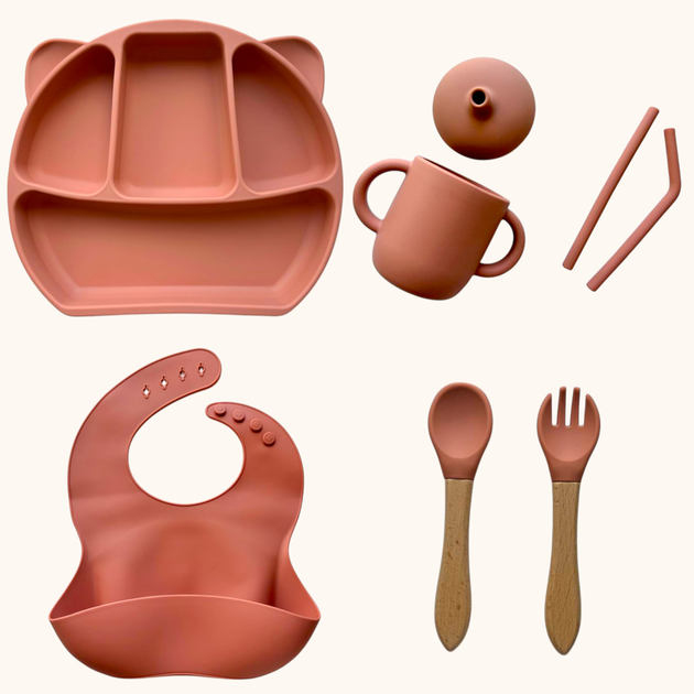 Набір дитячого силіконового посуду "Стартовий. Бук" Персиковий (2767041768)