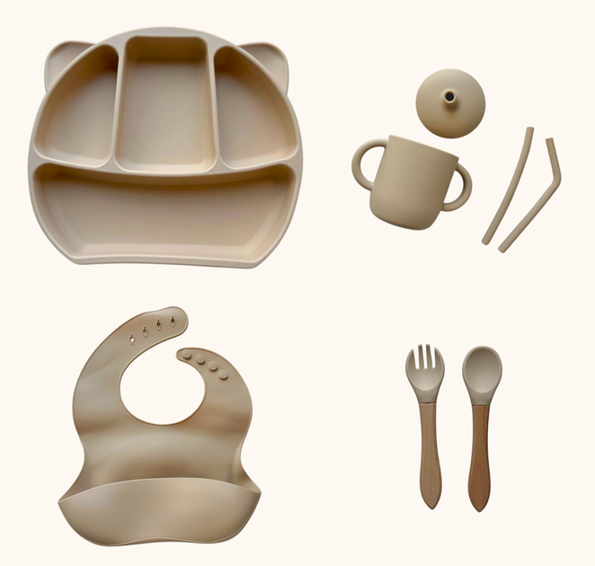 Набір дитячого силіконового посуду "Стартовий. Бук" Капучіно (2767041769)