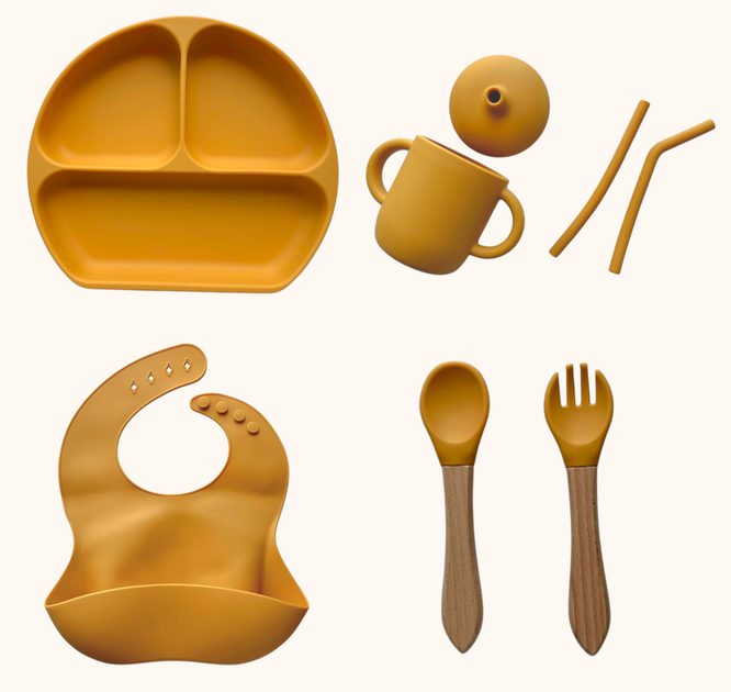 Набір дитячого силіконового посуду "Стартовий. Бук" Гірчиця (2767041772)