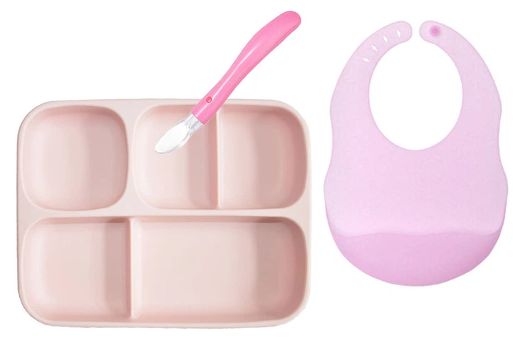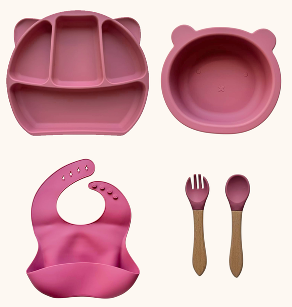 Набір дитячого силіконового посуду "Стартовий з вушками. Ведмедик. Бук" Димна троянда (2767041718)