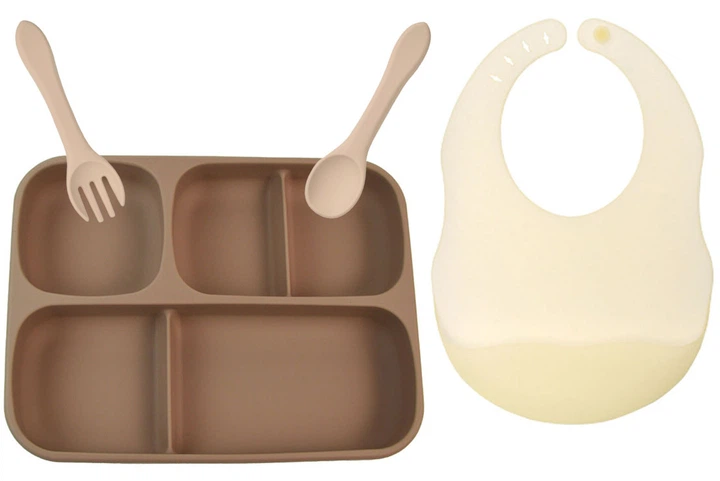 Набір дитячого силіконового посуду "Стартовий з вушками. Ведмедик. Бук" Бежевий (2767041714)