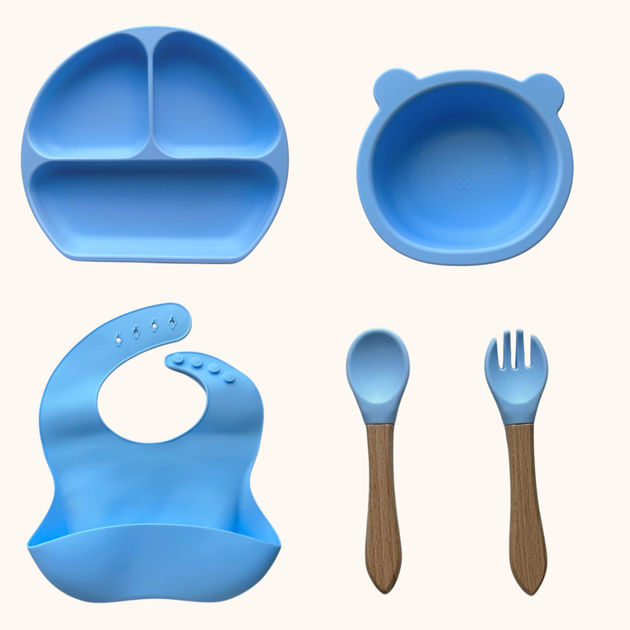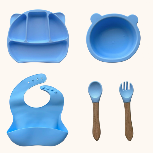 Набір дитячого силіконового посуду "Стартовий. Ведмедик. Бук" Блакитний (2767041683)
