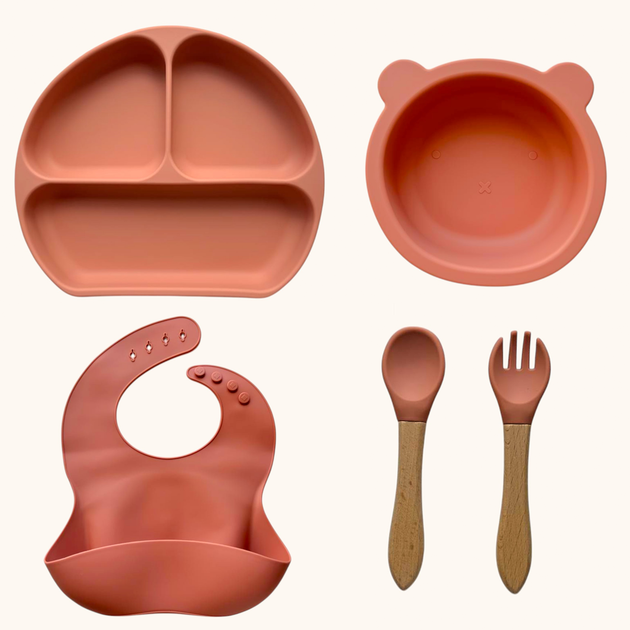 Набір дитячого силіконового посуду "Стартовий. Ведмедик. Бук" Персиковий (2767041678)