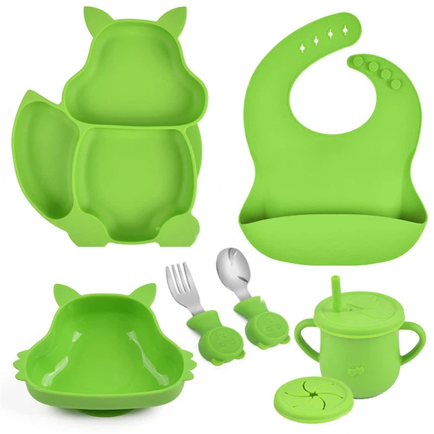 Набір дитячого посуду 2Life Білка Y7 з 7 предметів на присосці Зелений v-11314