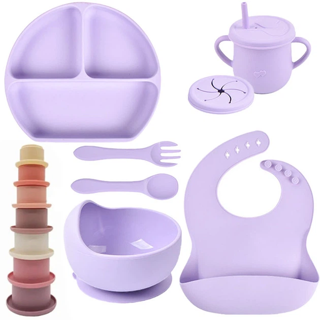 Набір силіконового посуду 2Life Y2 з 7 предметів і играшка пірамідка Y11 для зубів дитини n-11815