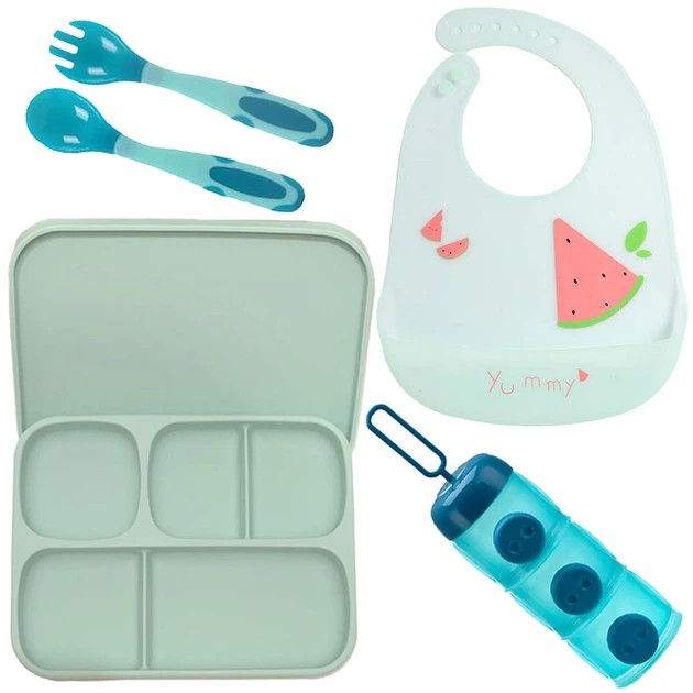 Набір посуду 2Life п'ятисекційна тарілка А3 з кришкою прилади слинявчик Зелений контейнер длясуміщі v-11868