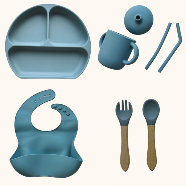 Набір дитячого силіконового посуду "Стартовий. Бук" Димний блакитний (2767041770)