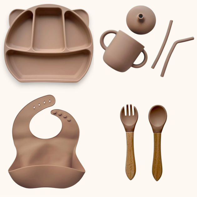 Набір дитячого силіконового посуду "Стартовий з вушками. Бук" Капучіно (2767041751)