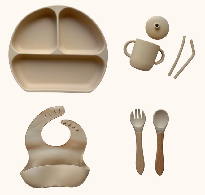 Набір дитячого силіконового посуду "Стартовий. Бук" Бежевий (2767041765)