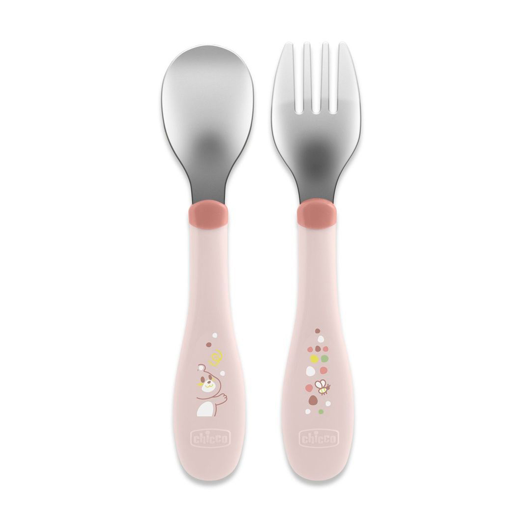 Дитячий набір для годування Chicco рожевий, від 1.5 року (виделка, 1 шт + ложка, 1 шт) (16102.15)