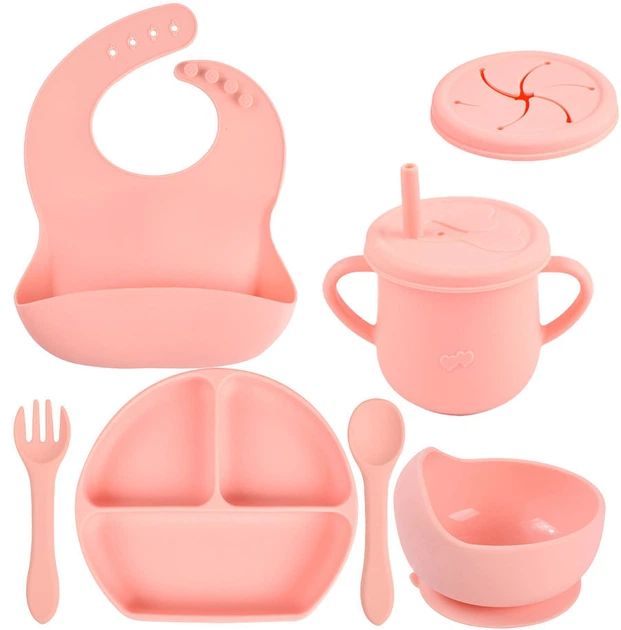 Набір дитячого силіконового посуду Y12 тарілка, слинявчик, тарілка для супу, ложка, вилка, поїльник