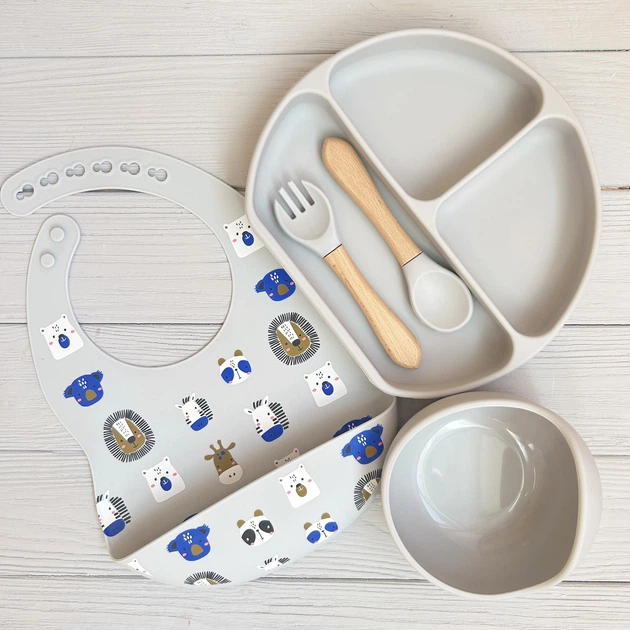 Набір дитячого силіконового посуду 2Life Краб Y23 з 7 предметів Світло-сірий v-12026