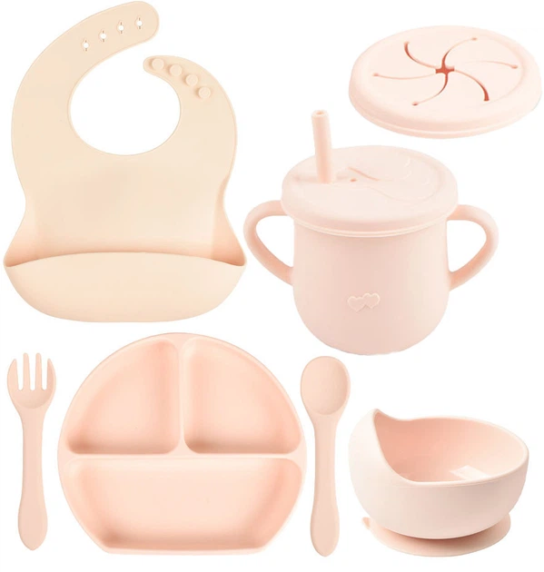 Набір дитячого силіконового посуду Y12 тарілка, слинявчик, тарілка для супу, ложка, вилка, поїльник