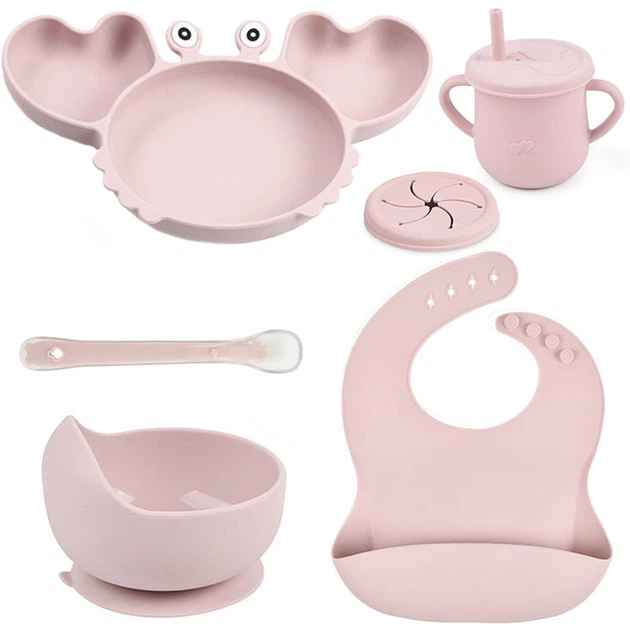 Набір дитячого силіконового посуду 2Life Y26 Краб для першого прикорму Бузковий n-12800