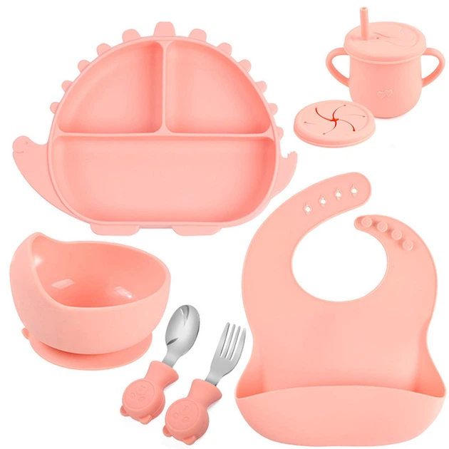 Набір силіконової посуди 2Life тарілка D10 слюнявчик Дінозавр тарілка для супа ложка виделка поїльник