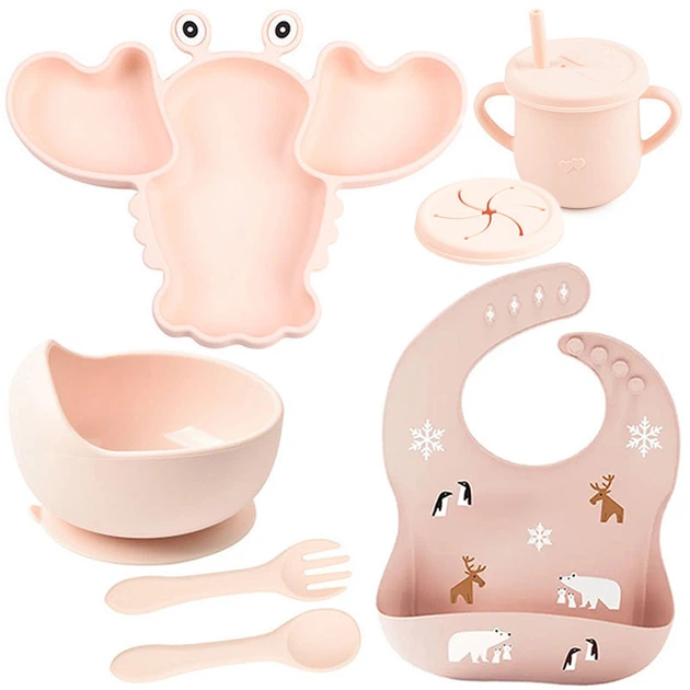 Набір силіконового посуду 2Life Рак Y4 із 7 предметів Рожевий v-12857