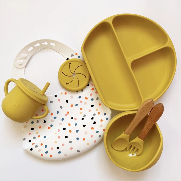 Дитячий силіконовий посуд Y17 принт точки Newsun