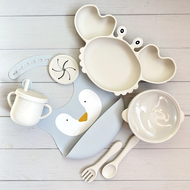 Набір дитячого посуду KR 2496 краб принт силікон Y19 Newsun