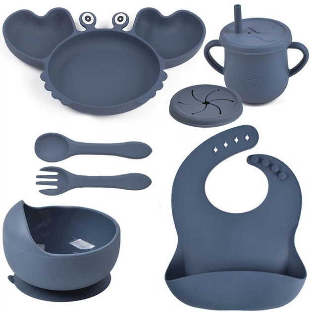 Набір дитячого силіконового посуду 2Life Краб Y10 з 7 предметів Синій n-12019