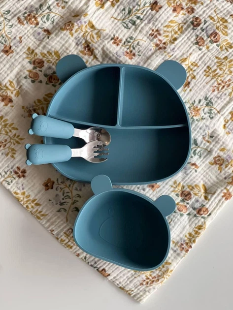 Набір дитячого силіконового посуду "Ведмедик" на присосках | Посуд для першого прикорму Смокі