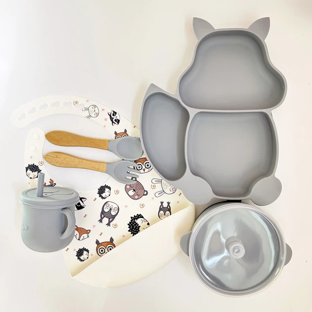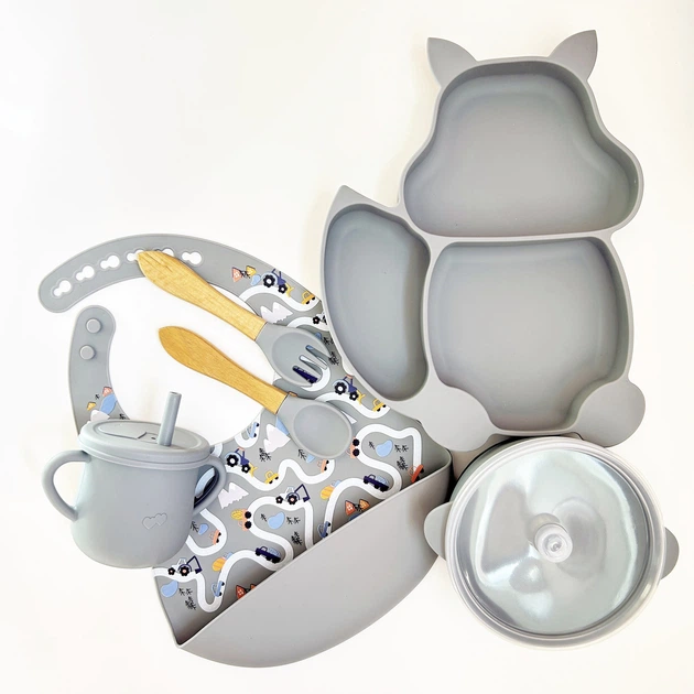 Набір дитячого посуду RN 2427 кругла принт дерево Y18 сірий Newsun