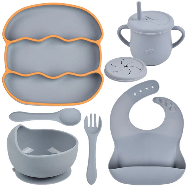 Набір дитячого посуду на присосці 2Life Білка Y18 із 7 предметів Сірий (v-11325)