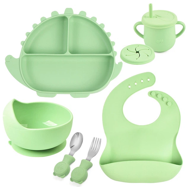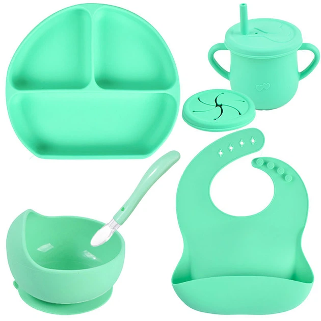 Набір дитячого силіконового посуду 2Lie Y13 із 6 предметів М'ятний (v-11369)