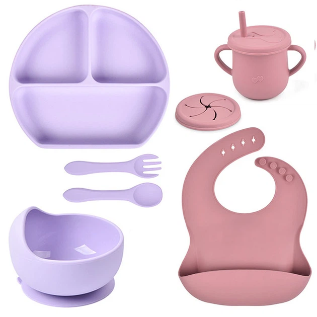 Набір дитячого посуду 2Life Y2+19 із 7 предметів на присосці Фіолетовий+Рожевий (v-11502)
