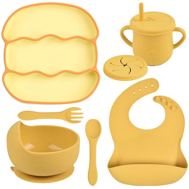 Набір силіконового посуду 2Life Y11 із 7 предметів на присосці Жовтий (v-11288)
