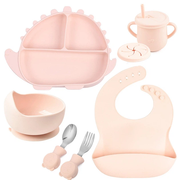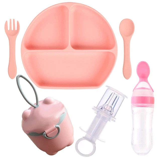 Набір силіконова тарілка ложка вилка контейнери-снеки шприц-дозатор пляшка-ложка 2Life Y12 6 шт Персиковий (vo-9905)