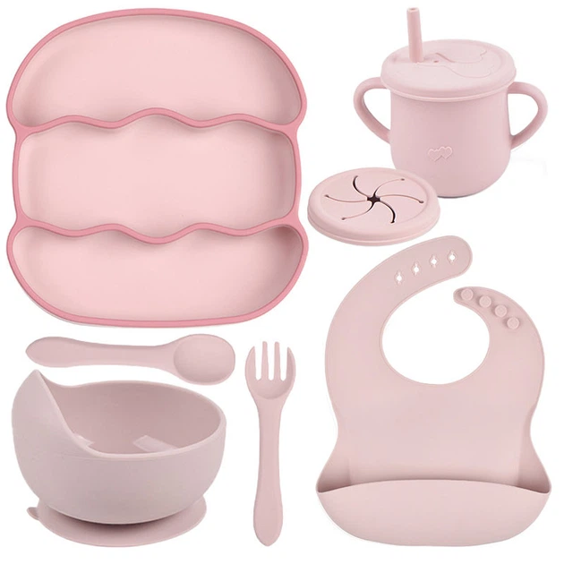 Набір дитячого силіконового посуду Хвиля Y26 7 предметів Фіолетовий (v-12012)