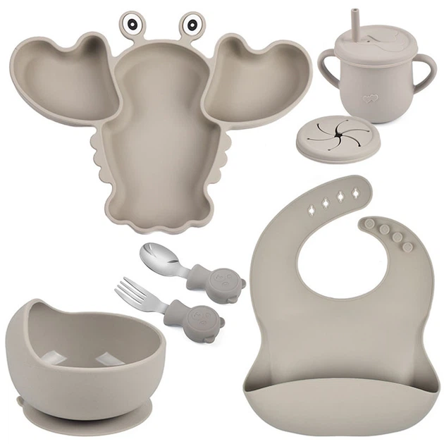 Набір дитячого силіконового посуду 2Life Y20 із 7 предметів Сірий (v-11508)