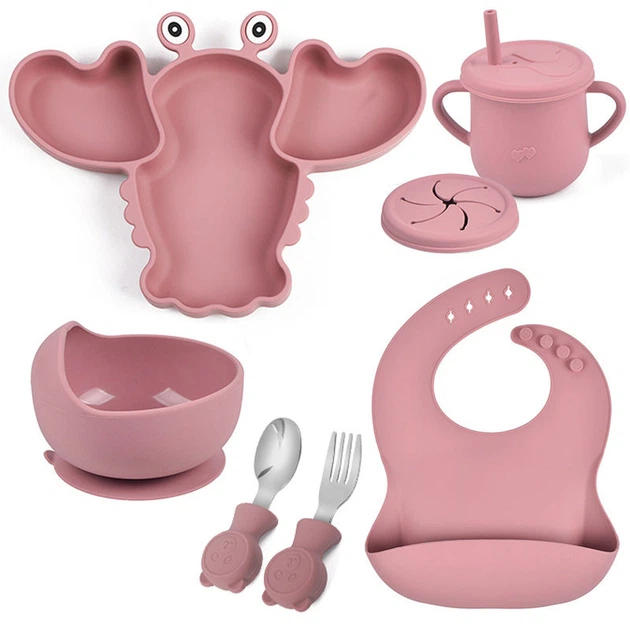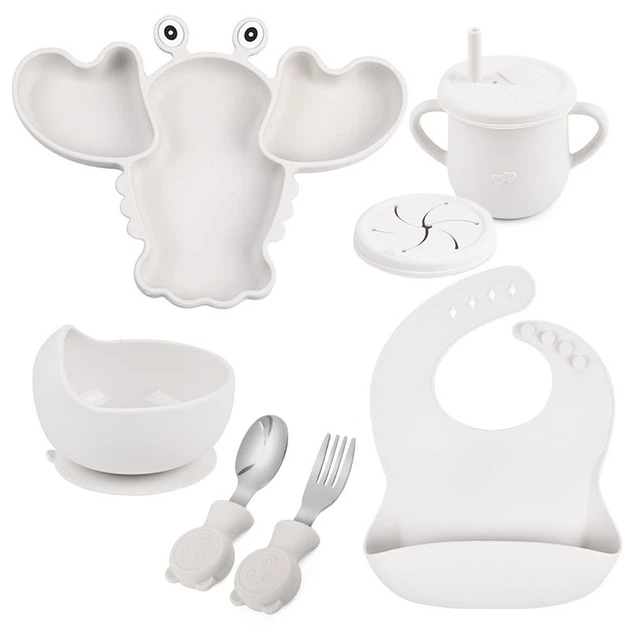 Набір дитячого силіконового посуду 2Life Краб Y18 з 7 предметів Сірий n-12022