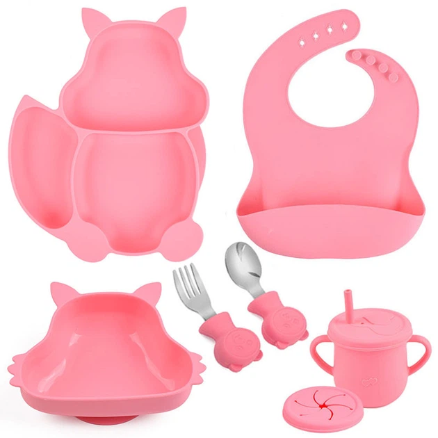 Набір дитячого посуду 2Life Білка Y14 з 7 предметів на прососці Рожевий n-11321