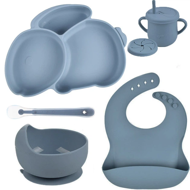 Набір силіконового посуду 2Life Y21 Кролик із 6-ти предметів Синій v-12823