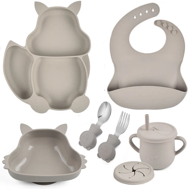 Набір дитячого посуду 2Life Білка Y20 з 7 предметів на прососці Сірий n-11327