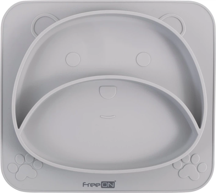 Силіконова тарілка з відділами, антиковзна для дітей, сірий, ведмежа FreeON Bear Словенія 39678