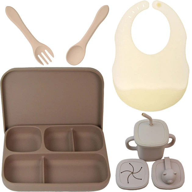 Набір дитячого силіконового посуду SV Y5 8в1 Бежевий (sv3340bej)
